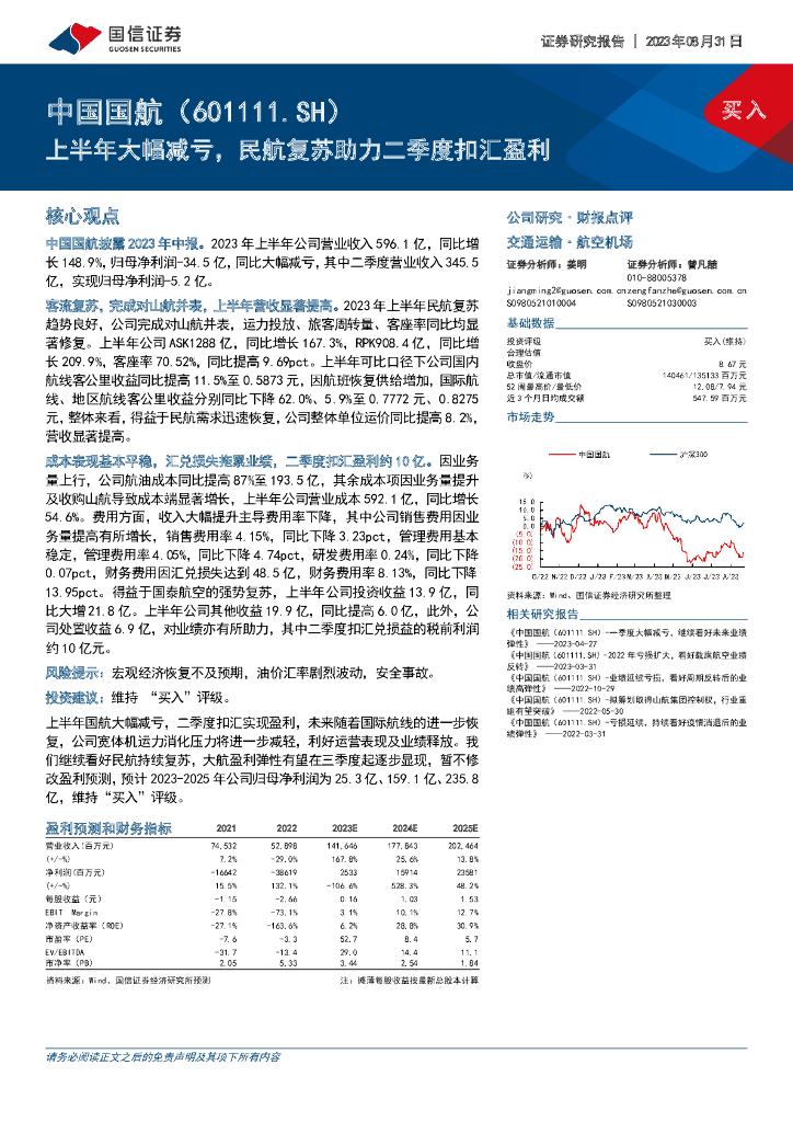 国信证券:中国国航(601111)-上半年大幅减亏,民航复苏助力二季度扣汇盈利.pdf
