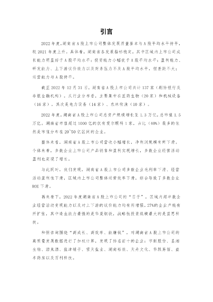 和恒咨询:湖南省A股上市公司高质量发展报告(2022年报).pdf