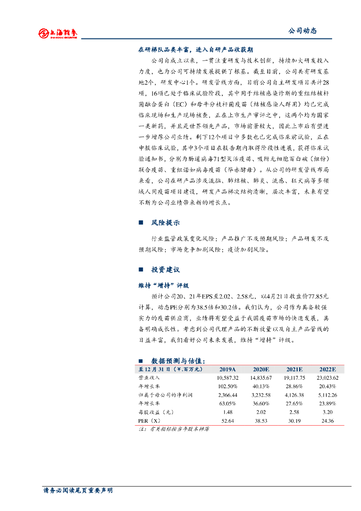 上海证券:智飞生物(300122)-2019年年报点评:代理产品推动营收高速增长 自主产品即将迎来收获期.pdf