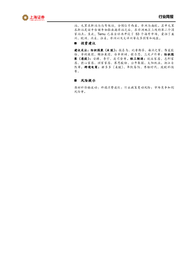 上海证券:轻工纺服行业周报:轻纺社零弱复苏,关注业绩强高分红标的.pdf