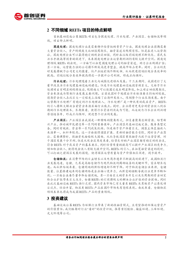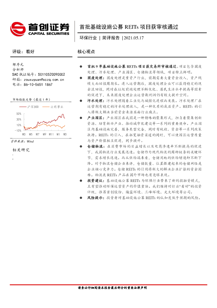 首创证券:环保行业简评报告:首批基础设施公募REITs项目获审核通过.pdf