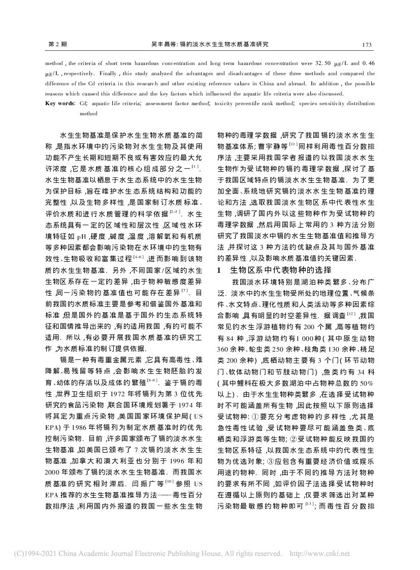 中国环境科学研究院:镉的淡水水生生物水质基准研究.pdf