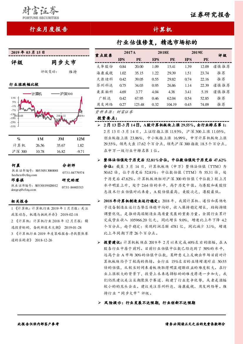 财富证券:计算机行业月度报告:行业估值修复,精选市场标的.pdf