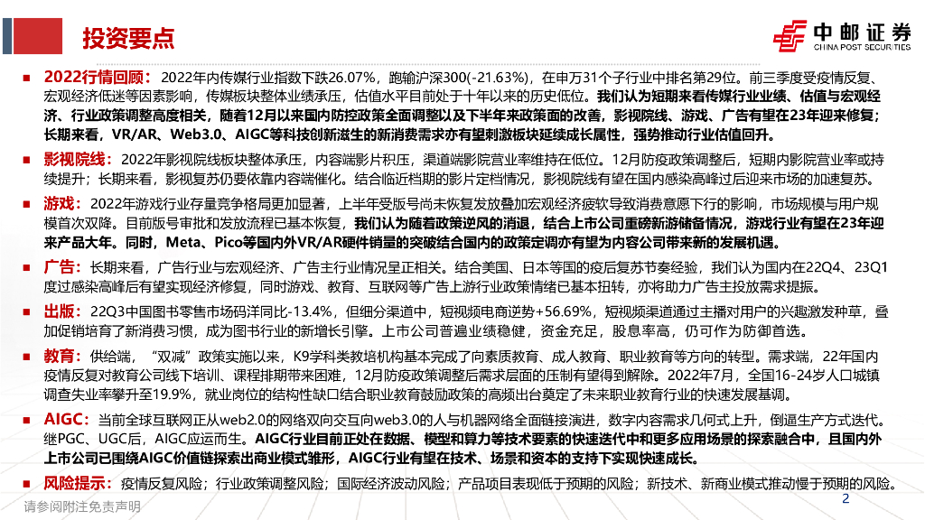 中邮证券:传媒行业2023年度策略报告:传统文娱迎接复苏,科技创新拥抱成长.pdf