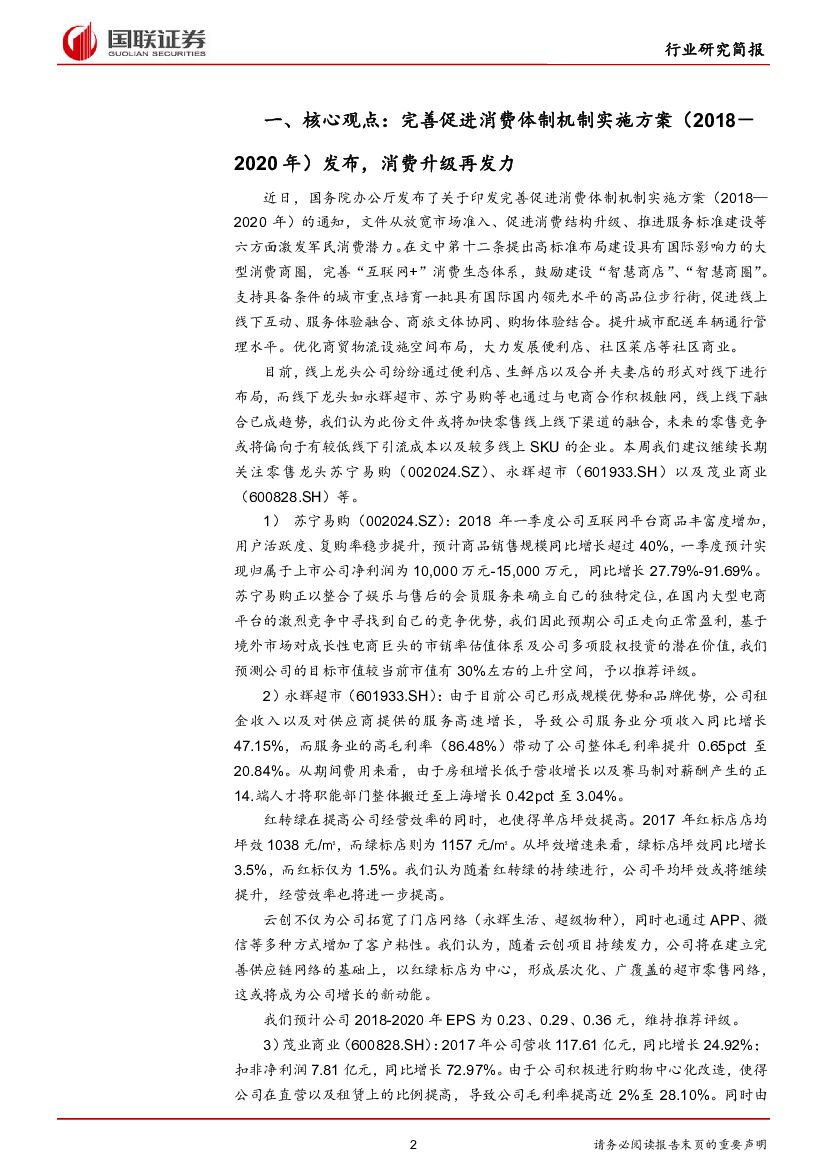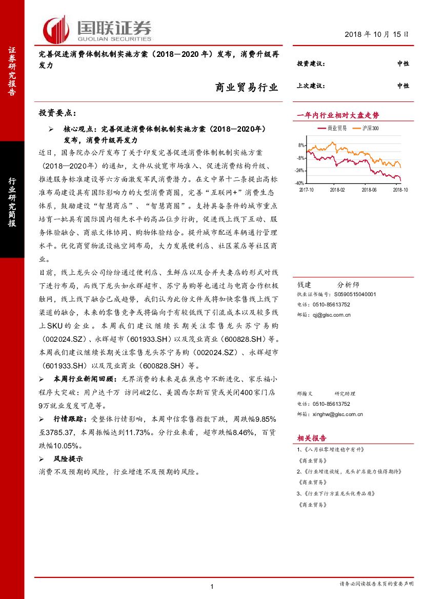 国联证券:商业贸易行业:完善促进消费体制机制实施方案(2018-2020年)发布,消费升级再发力.pdf