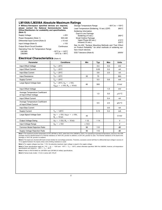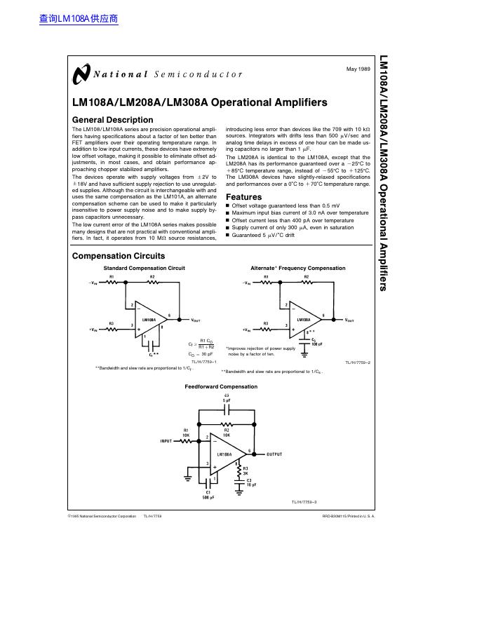 National semiconductor LM108A/LM208A/LM308A Operational Amplifiers 数据手册.pdf
