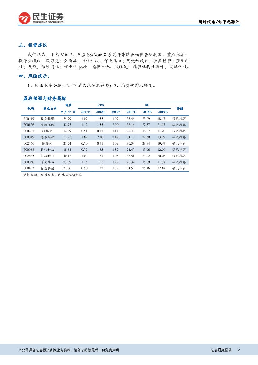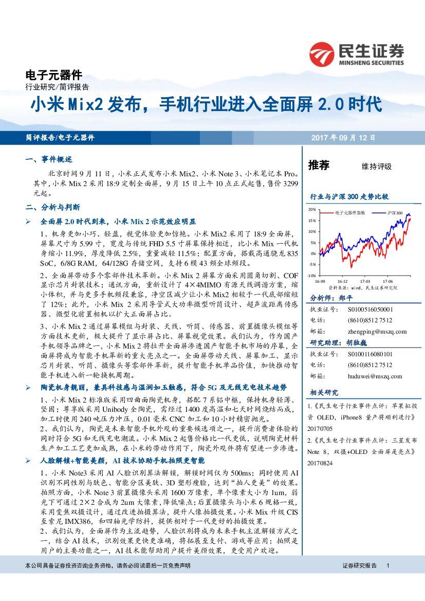 民生证券:电子元器件行业简评报告:小米Mix2发布,手机行业进入全面屏2.0时代.pdf