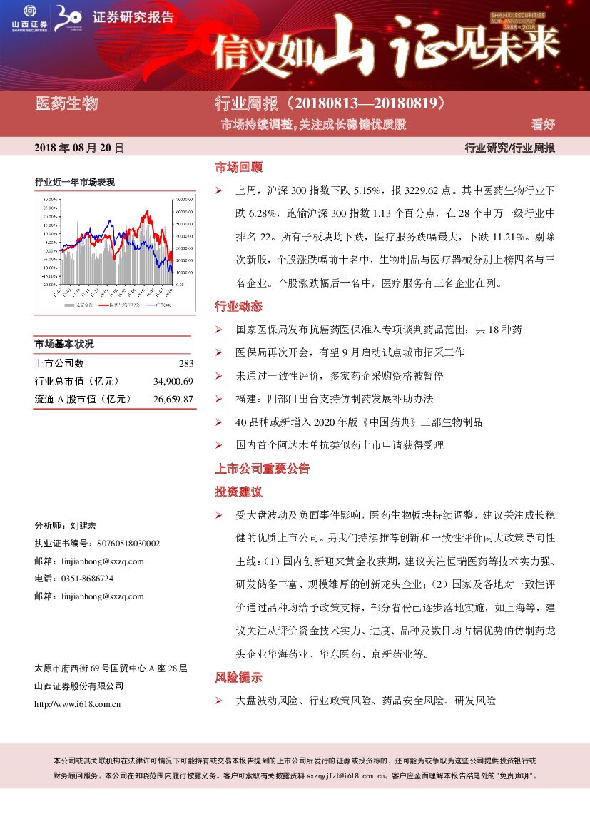 山西证券:医药生物行业周报:市场持续调整,关注成长稳健优质股.pdf