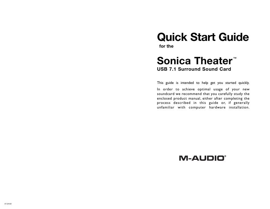 M-AUDIO Sonica Theater USB 7.1 Surround Sound Card Quick Start Guide.pdf