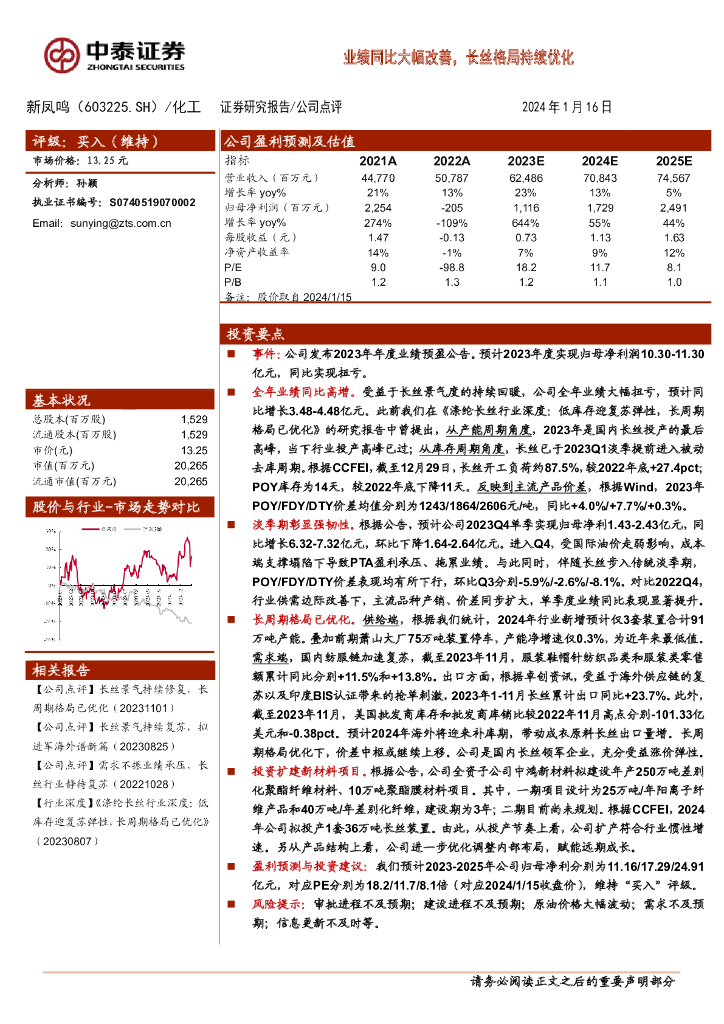 中泰证券:新凤鸣(603225)-业绩同比大幅改善,长丝格局持续优化.pdf