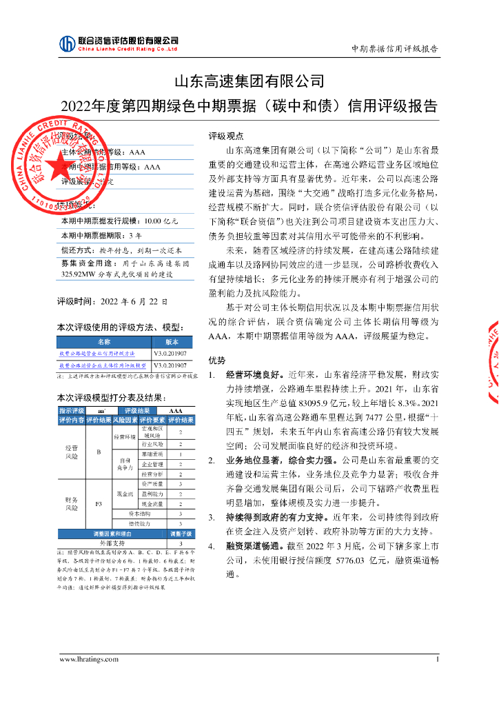联合资信:山东高速集团有限公司2022年度第四期绿色中期票据(碳中和债)信用评级报告.pdf