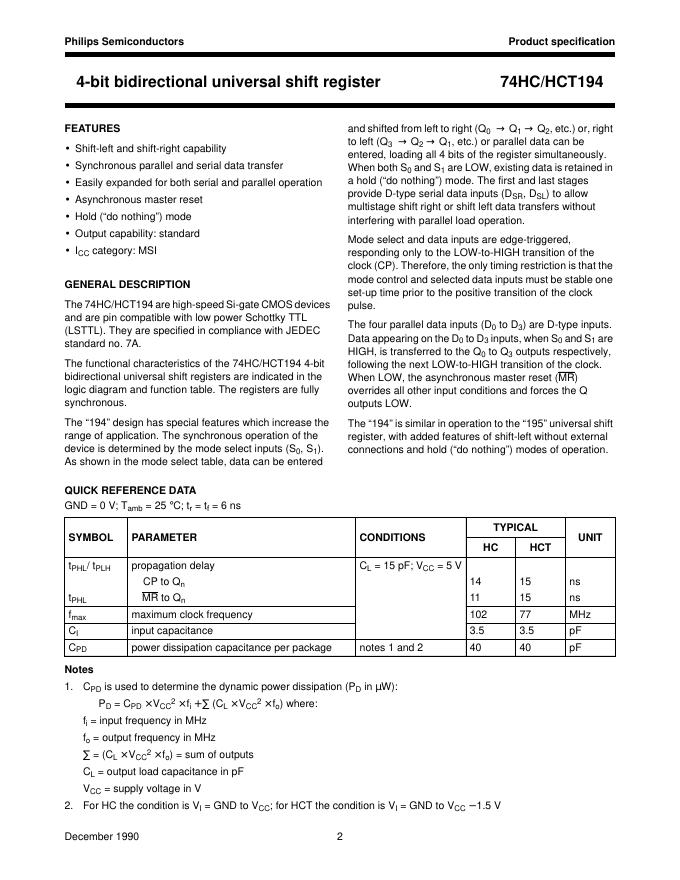 PHILIPS 74HC/HCT194 4-bit bidirectional universal shift register 数据手册.pdf