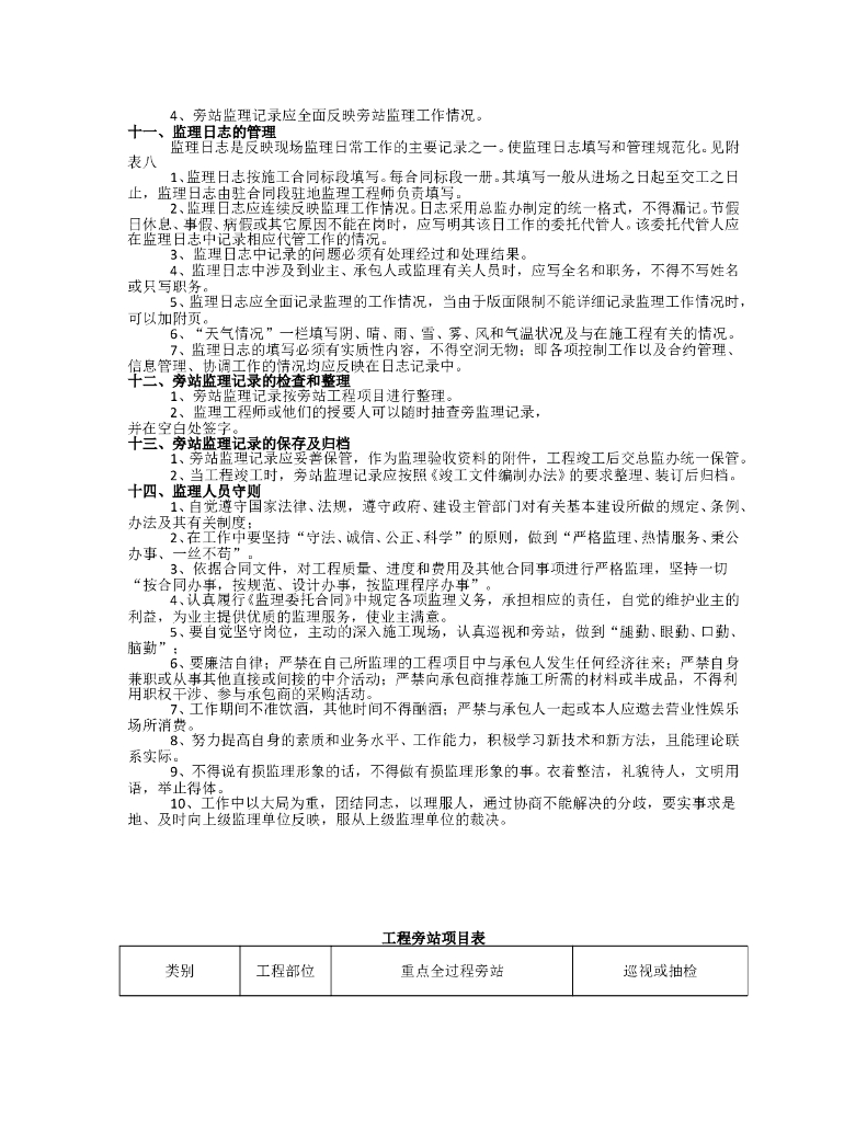 市政工程监理旁站方案示范文本.doc