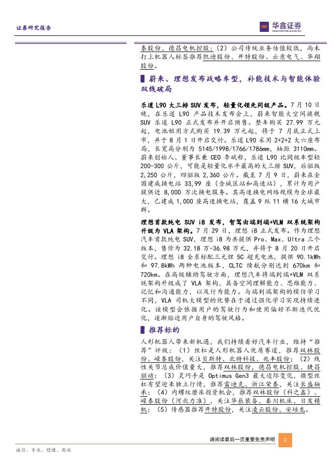华鑫证券:汽车行业周报:世界机器人大会开幕在即,乐道L90+理想i8发布.pdf