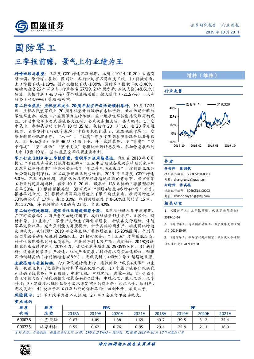 国盛证券:国防军工行业周报:三季报前瞻,景气上行业绩为王.pdf