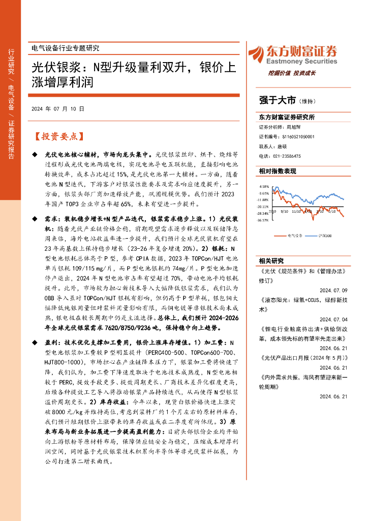 东方财富证券:电气设备行业专题研究:光伏银浆:N型升级量利双升,银价上涨增厚利润.pdf