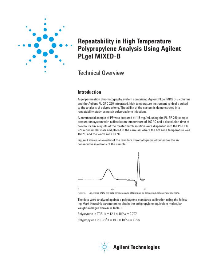 Agilent Technologies Repeatability in High Temperature Polypropylene Analysis Using Agilent PLgel MIXED-B 技术手册.pdf