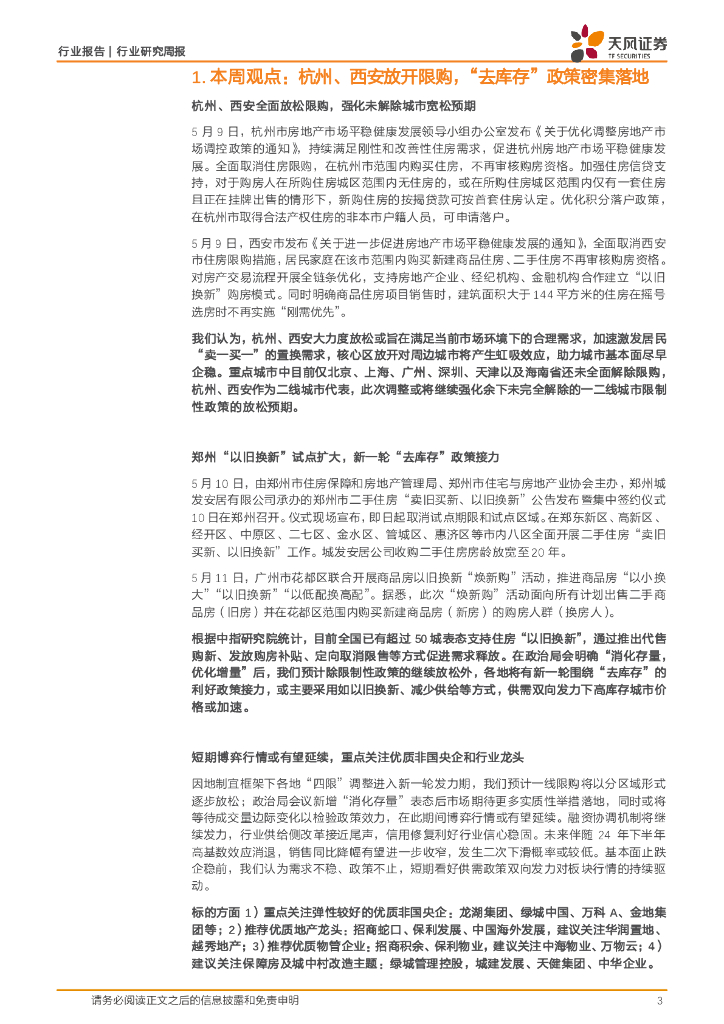 天风证券:房地产行业周报:杭州、西安放开限购,“去库存”政策密集落地.pdf