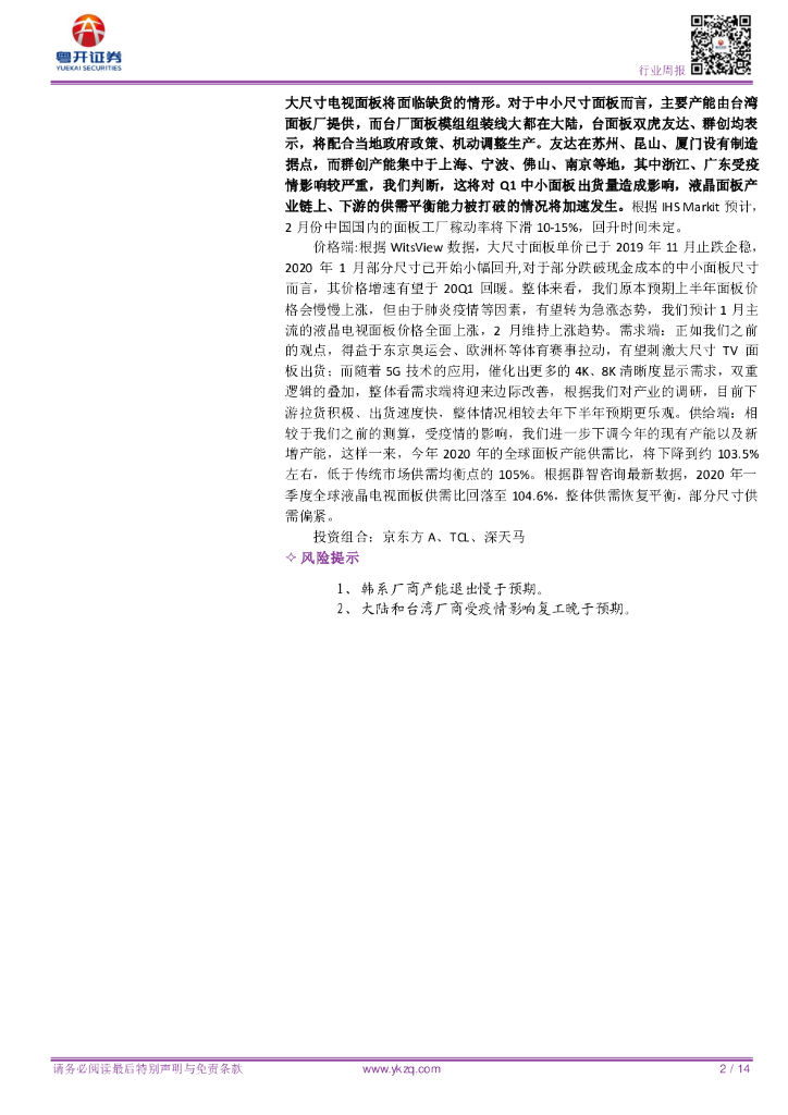 粤开证券:【粤开电子行业周报】武汉疫情对面板产业价格与供需影响.pdf