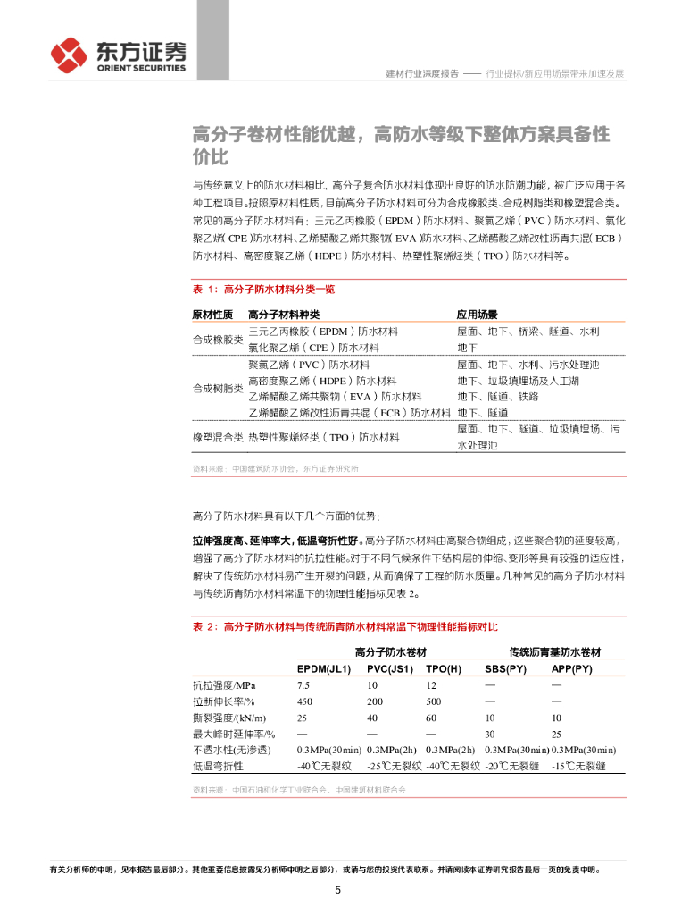 东方证券:建材行业-高分子防水卷材行业深度报告:行业提标/新应用场景带来加速发展.pdf