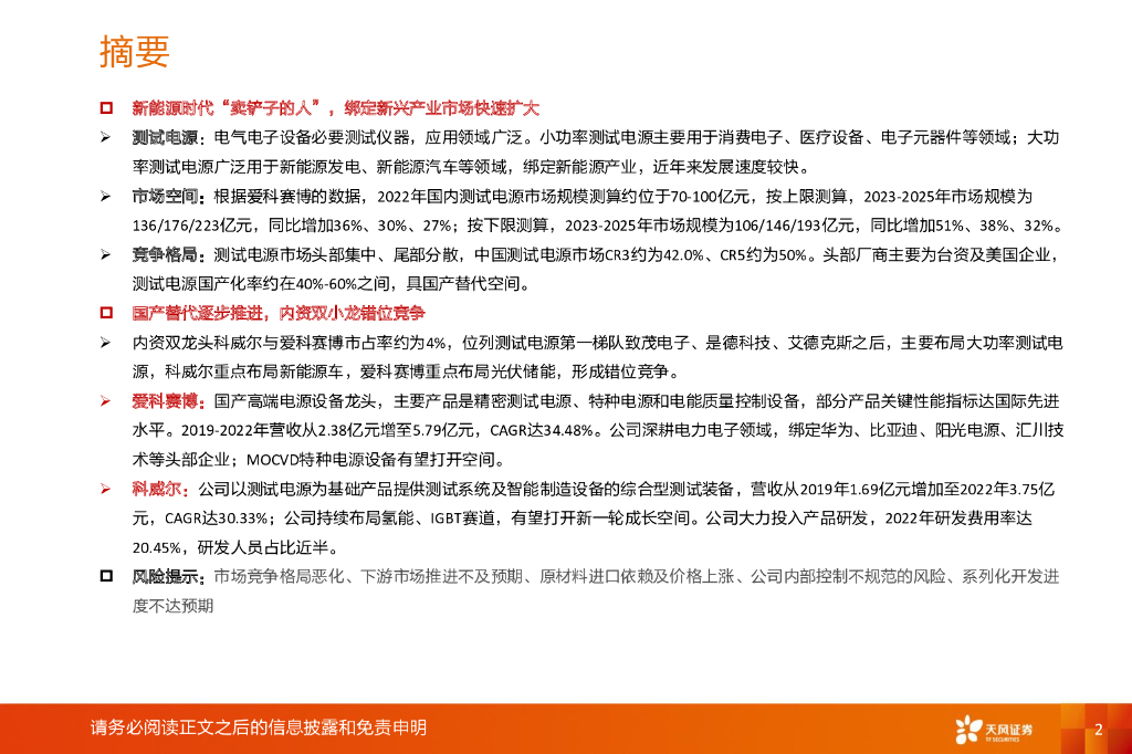天风证券:机械设备:测试电源设备——新能源时代“卖铲子的人”,绑定新兴产业市场快速扩大,内资二小龙错位竞争.pdf