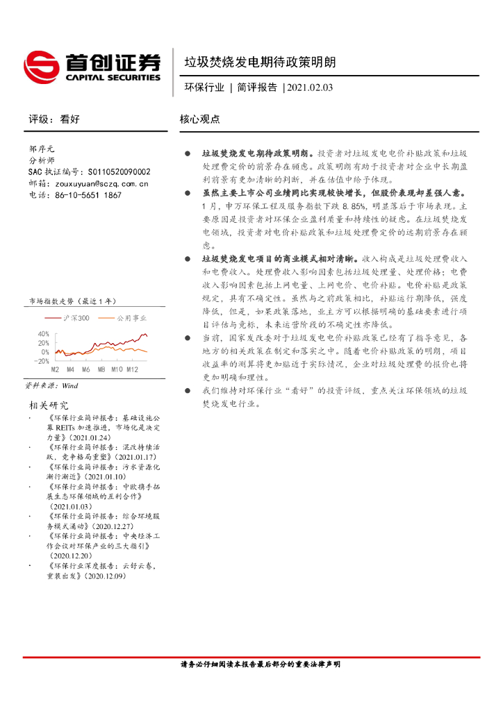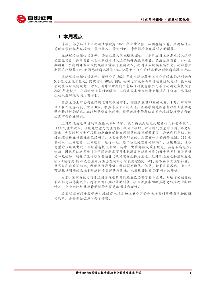 首创证券:环保行业简评报告:垃圾焚烧发电期待政策明朗.pdf