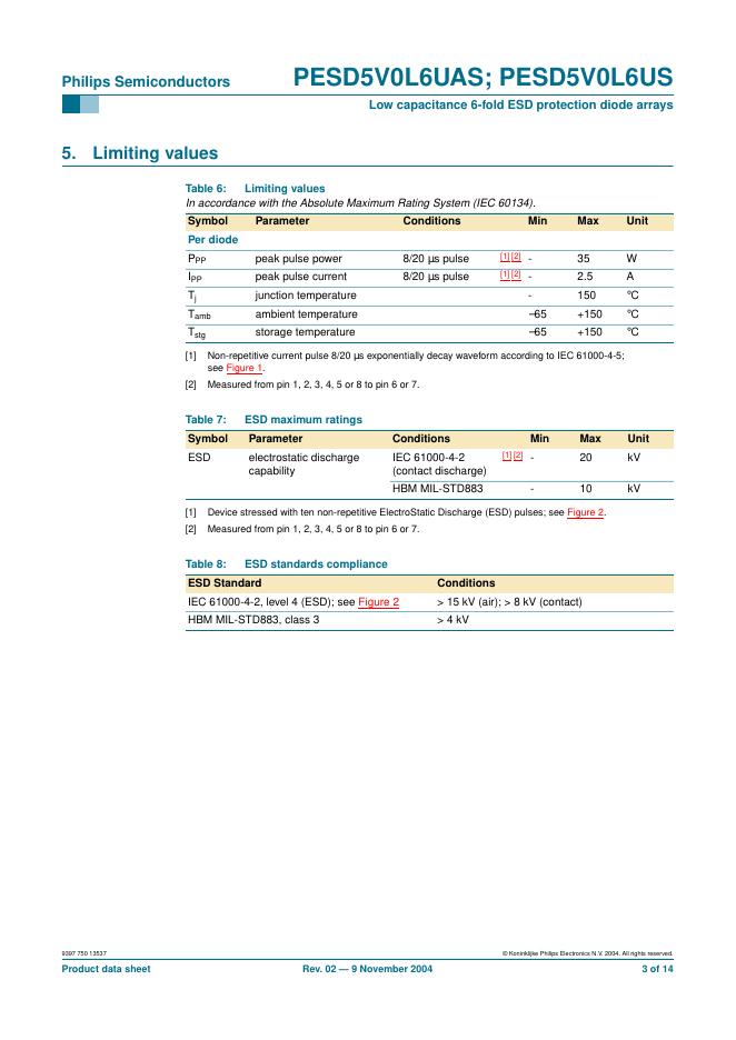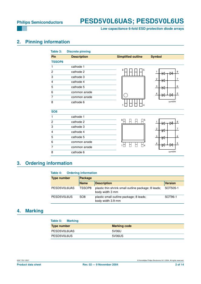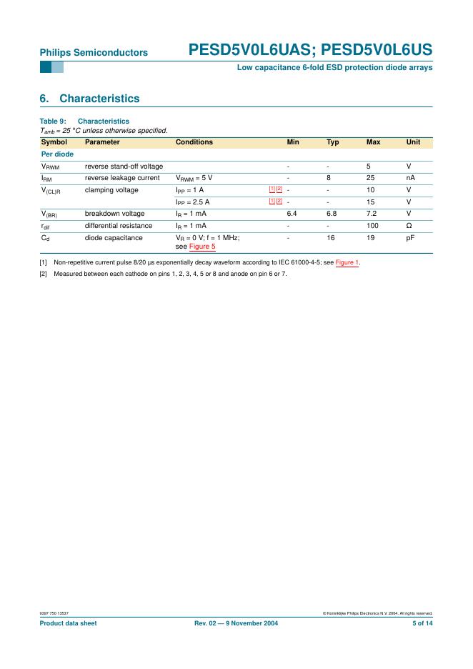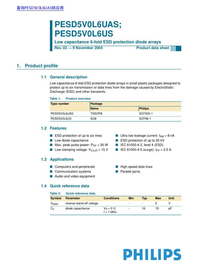 PHILIPS PESD5V0L6UAS; PESD5V0L6US Low capacitance 6-fold ESD protection diode arrays 数据手册.pdf