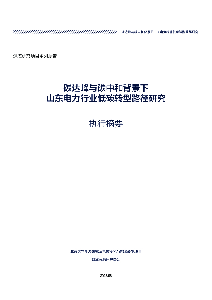 煤控研究&北京大学能源研究院:碳达峰与碳中和背景下山东电力行业低碳转型路径研究.pdf