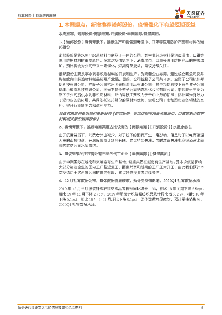天风证券:纺织服装行业研究周报:新增推荐诺邦股份,疫情催化下有望短期受益.pdf