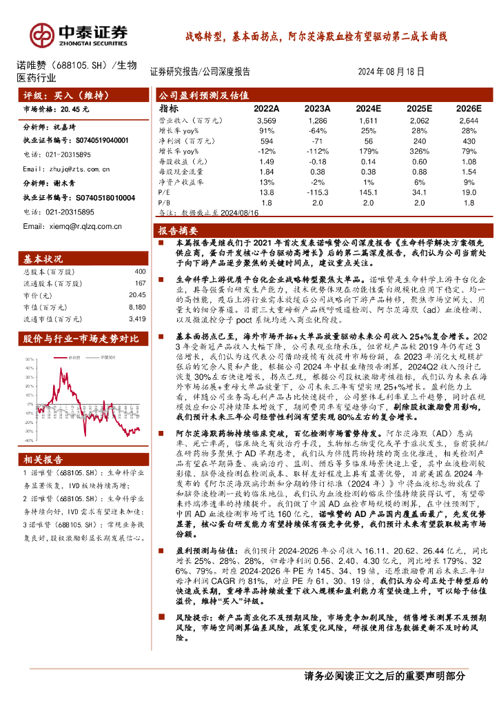 中泰证券:诺唯赞(688105)-战略转型,基本面拐点,阿尔茨海默血检有望驱动第二成长曲线.pdf