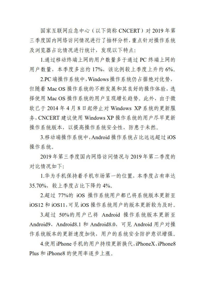 CNCERT:2019年第三季度国内操作系统及浏览器占比情况分析.pdf