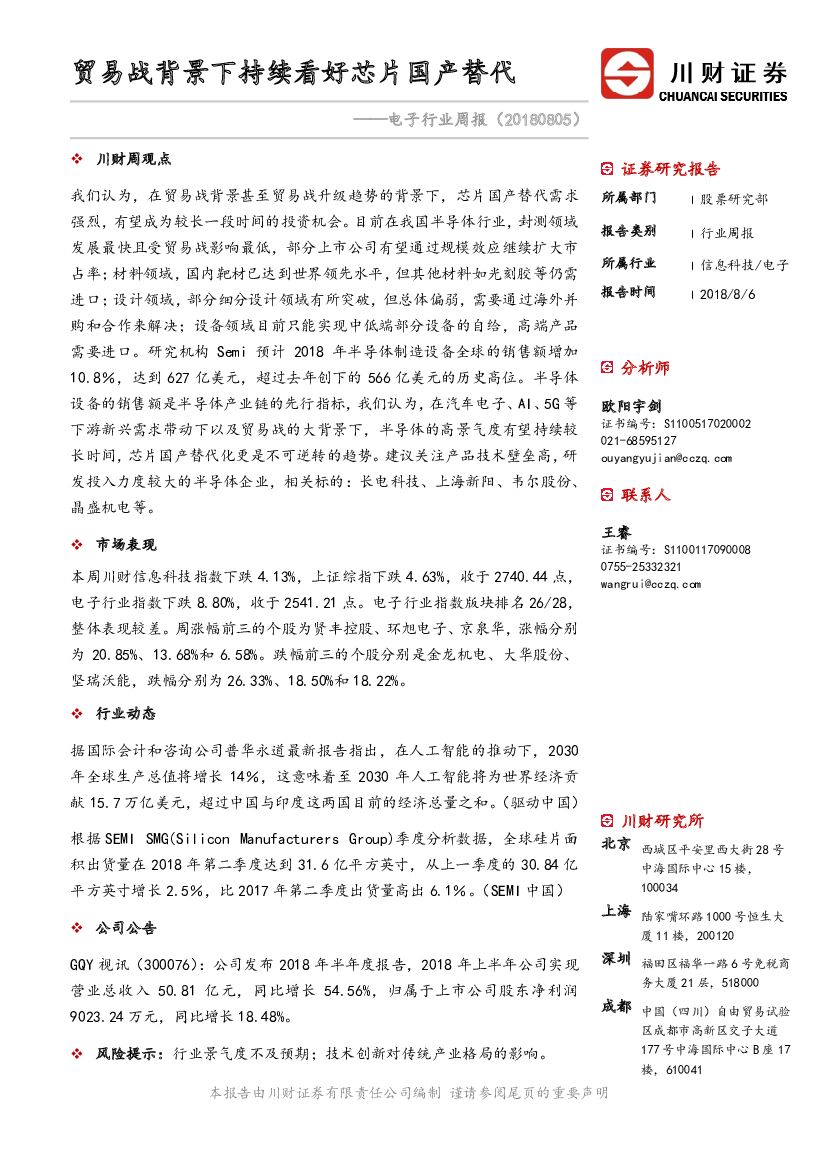 川财证券:电子行业周报:贸易战背景下持续看好芯片国产替代.pdf