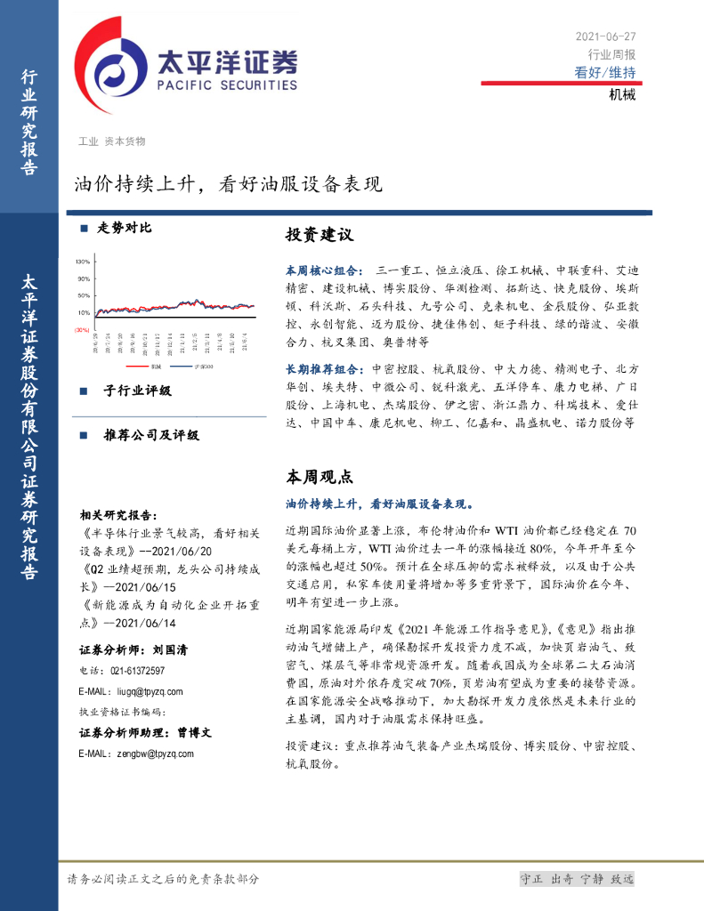 太平洋证券:机械行业周报:油价持续上升,看好油服设备表现.pdf