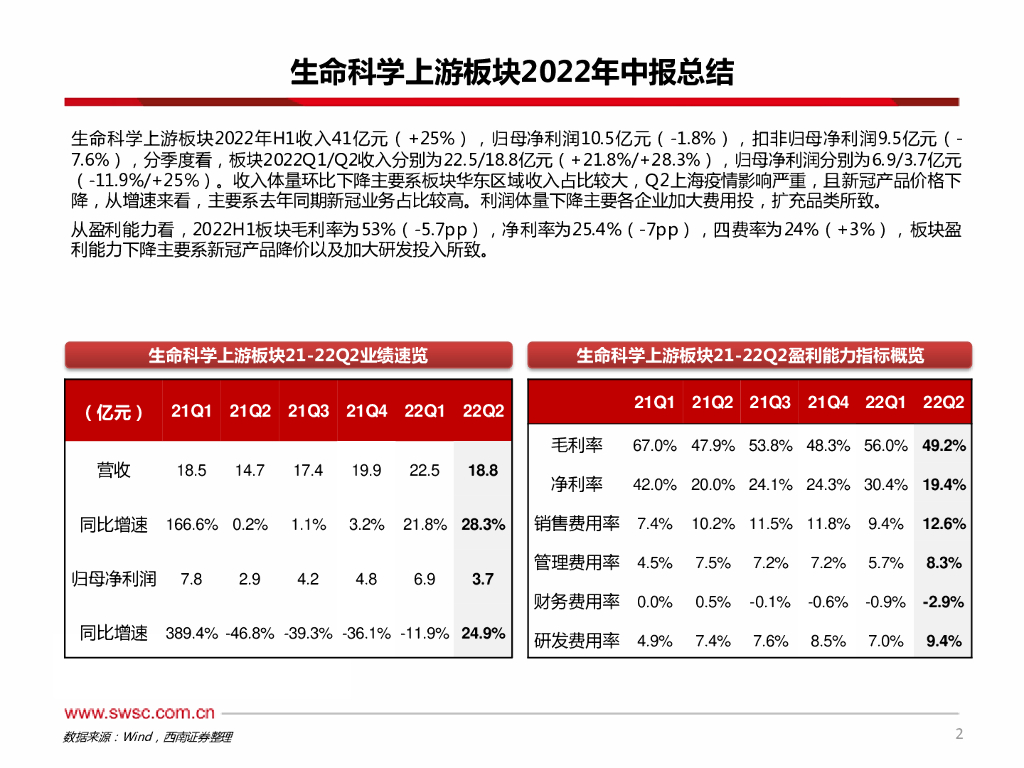西南证券:生命科学上游板块2022年中报总结:板块Q2受疫情影响,常规业务内部有所分化.pdf