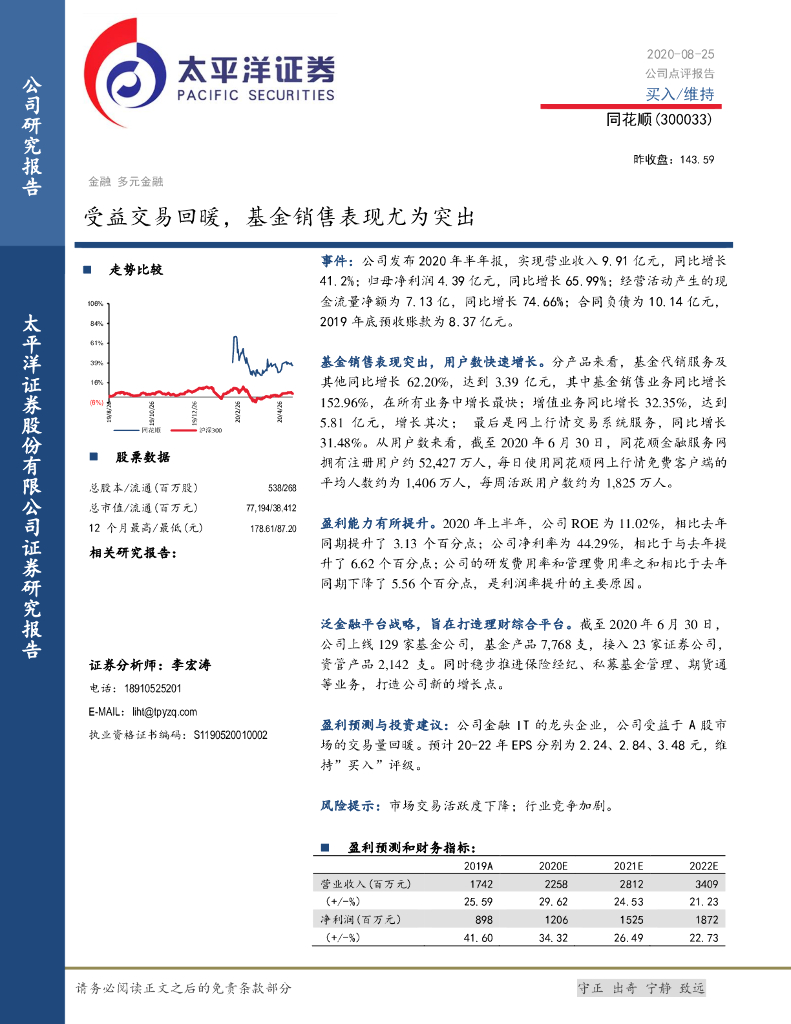 太平洋证券:同花顺(300033)-受益交易回暖,基金销售表现尤为突出.pdf