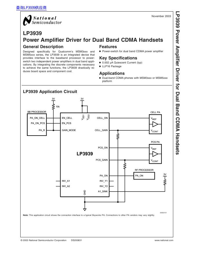 NATIONAL SEMICONDUCTOR - May 27, 2008 DS15BA101 1.5 Gbps Differential Buffer with Adjustable Output Voltage General 说明书
