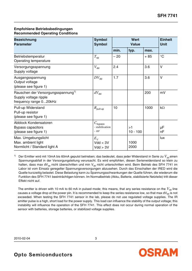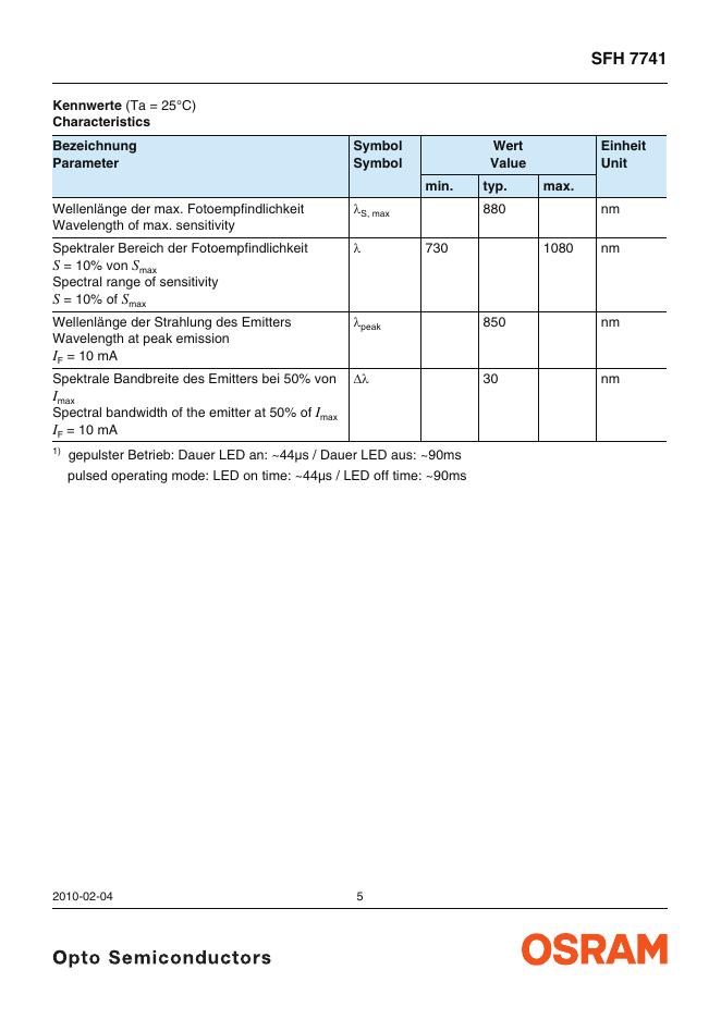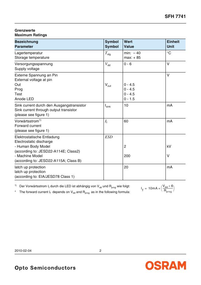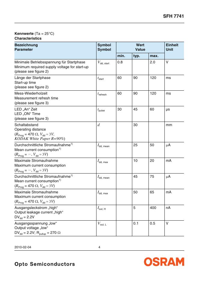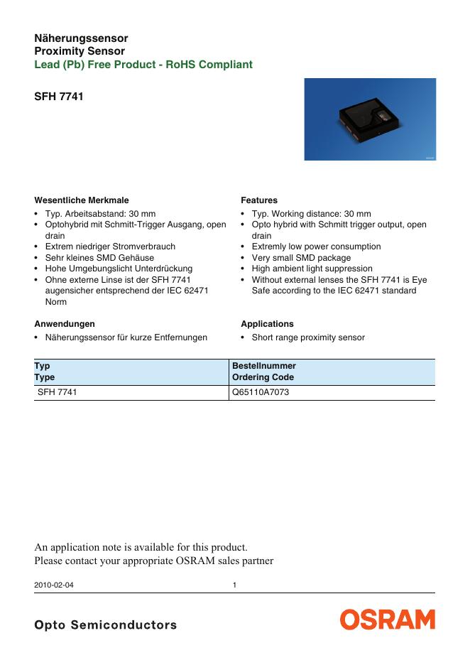 OSRAM SYLVANIA - SFH 7741 Näherungssensor Proximity Sensor Lead (Pb) Free Product - RoHS Compliant 数据手册.pdf