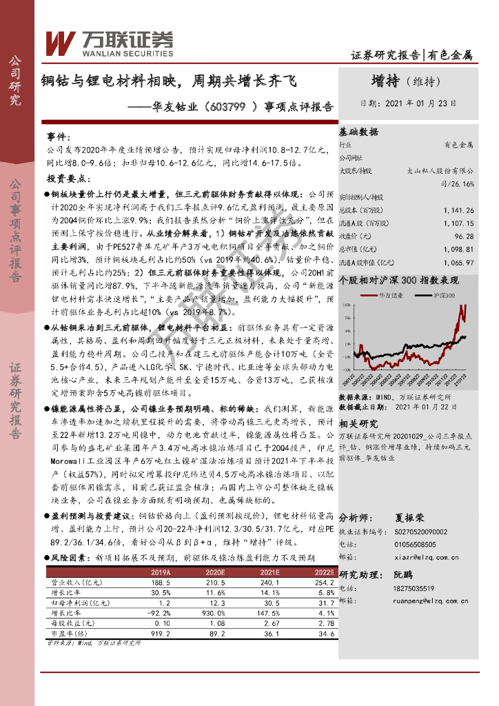 万联证券:华友钴业(603799)-事项点评报告:铜钴与锂电材料相映,周期共增长齐飞.pdf