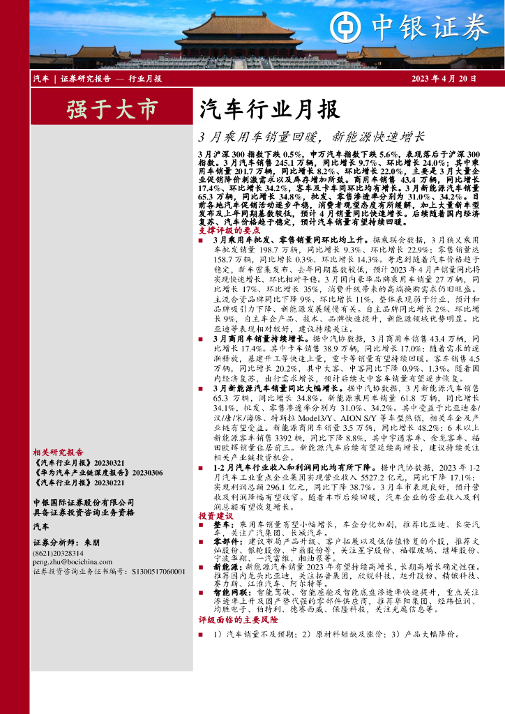 中银证券:汽车行业月报:3月乘用车销量回暖,新能源快速增长.pdf