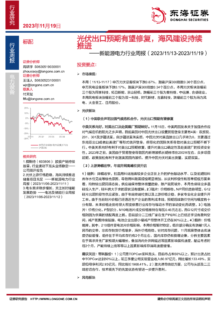 东海证券:新能源电力行业周报:光伏出口预期有望修复,海风建设持续推进.pdf