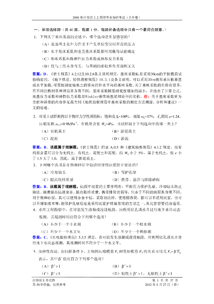 2008年全国注册岩土工程师专业知识考试试题(解析).pdf