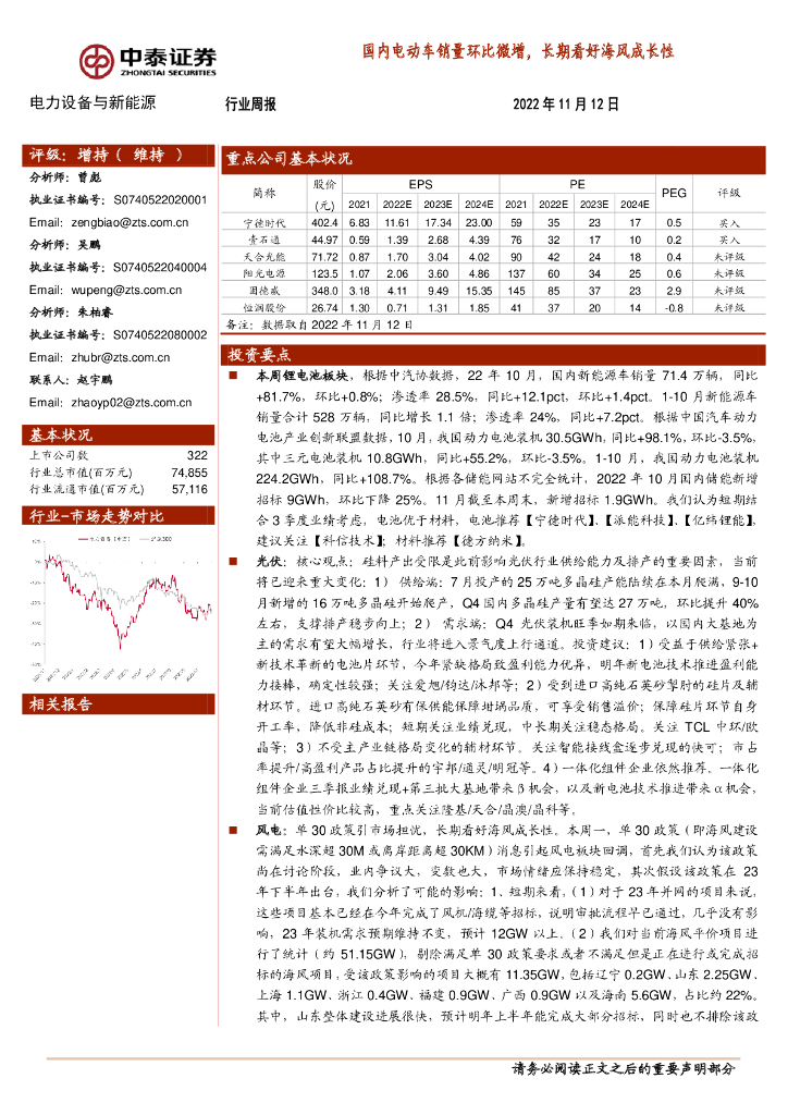 中泰证券:电力设备与新能源行业周报:国内电动车销量环比微增,长期看好海风成长性.pdf