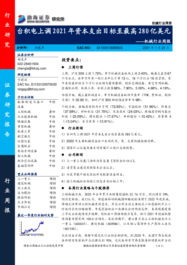 渤海证券:机械行业周报:台积电上调2021年资本支出目标至最高280亿美元.pdf