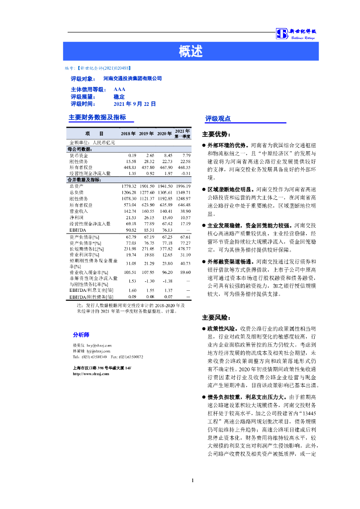 新世纪:河南交通投资集团有限公司主体信用评级报告及跟踪评级安排.pdf
