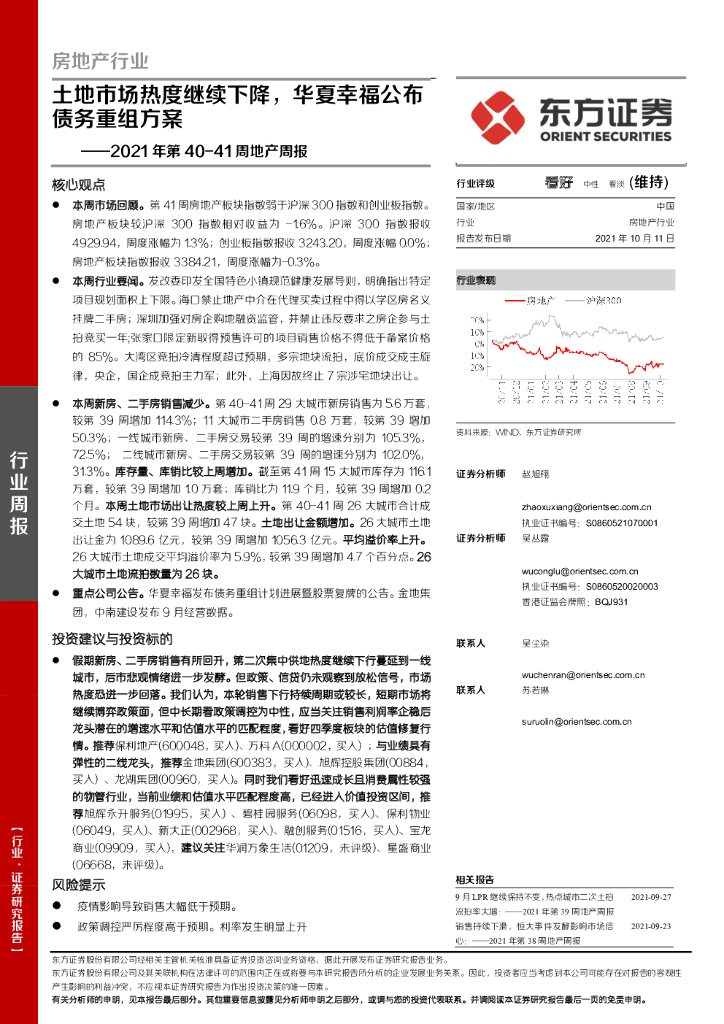 东方证券:房地产行业:2021年第40-41周地产周报:土地市场热度继续下降,华夏幸福公布债务重组方案.pdf