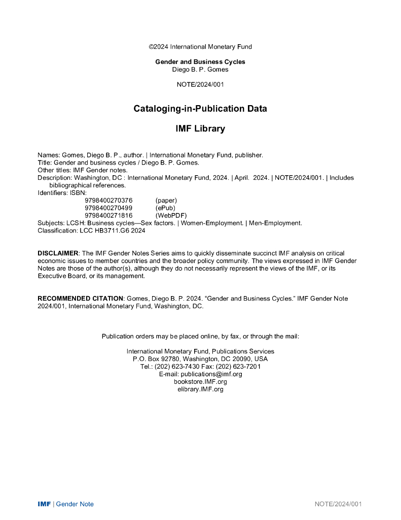 国际货币基金组织:2024性别与商业周期报告(英文版).pdf
