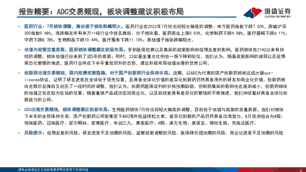 国信证券:医药生物行业2022年8月投资策略:ADC交易频现,板块调整建议积极布局.pdf