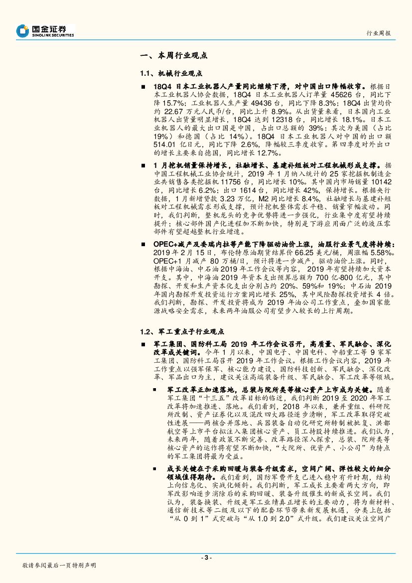 国金证券:机械、军工行业研究周报:1月挖机销量保持增长,日本工业机器人对中国出口降幅收窄.pdf