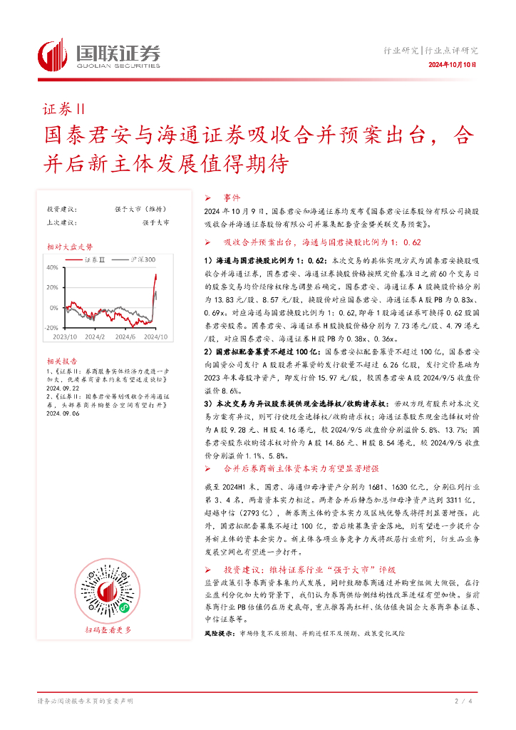国联证券:证券Ⅱ:国泰君安与海通证券吸收合并预案出台,合并后新主体发展值得期待.pdf