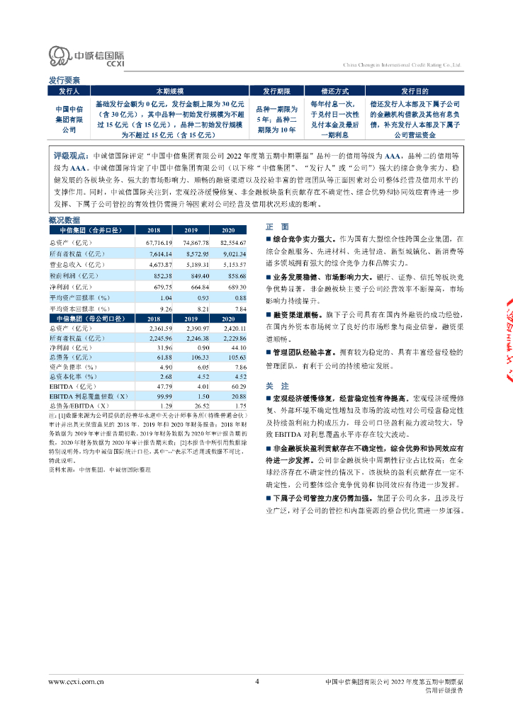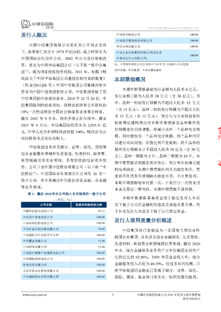 中诚信:中国中信集团有限公司2022年度第五期中期票据债项信用评级报告及跟踪评级安排.pdf